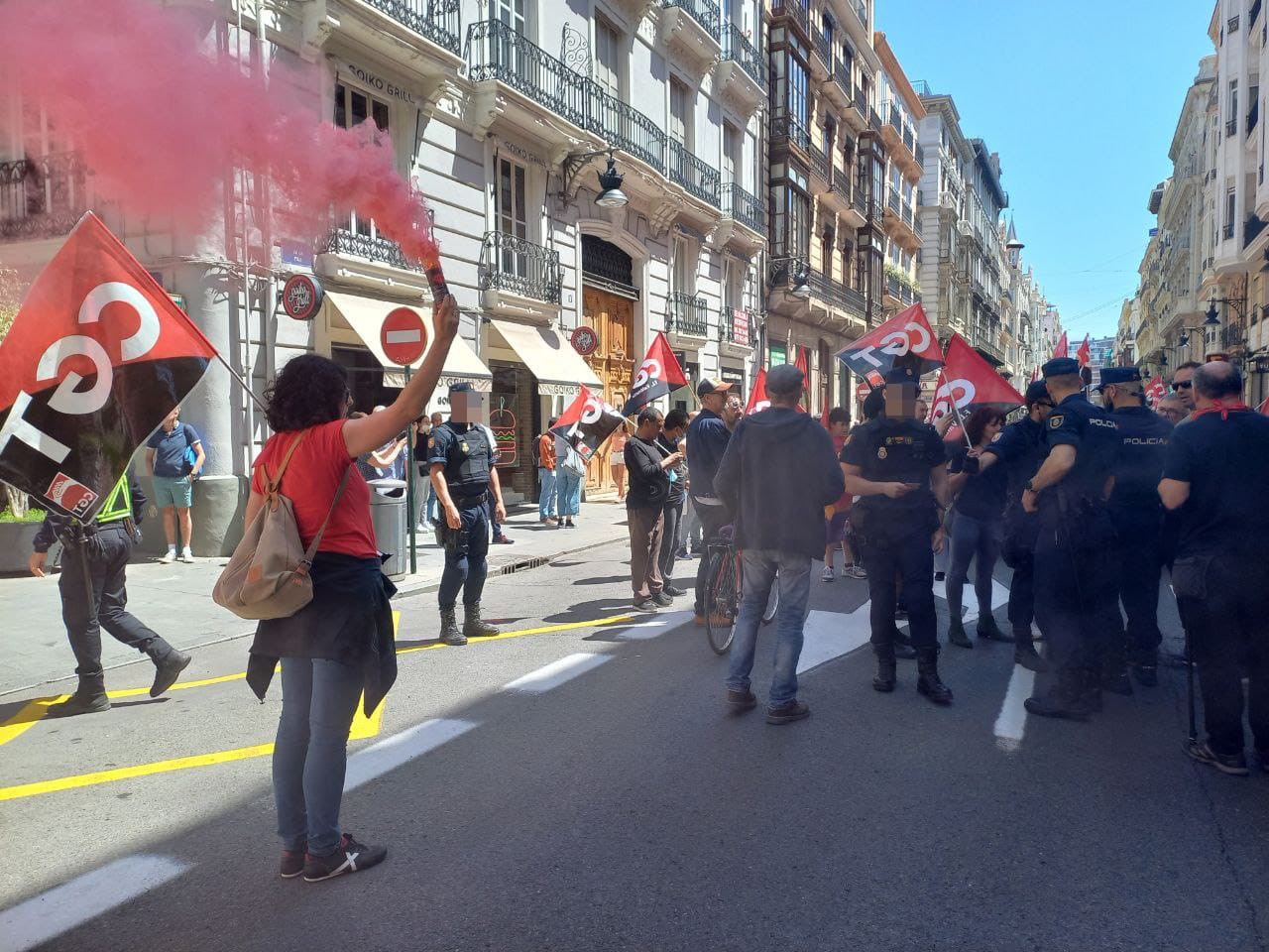Desde CGT València recuerdan como sus afiliadas fueron rodeadas por miembros de la policía en la calle de la Paz, en el transcurso de la manifestación del 1º de mayo de este 2022. El motivo de esta actuación policial fue que las tres personas habían encendido unos botes de humo que contenían los colores de la bandera rojinegra, símbolo de la organización, “en el propio contexto de la manifestación, guardando la distancia y las medidas de seguridad que dicho material requiere” inciden desde CGT. Transcurridos tres meses de la identificación y la manifestación, en plenas vacaciones estivales, las tres personas recibieron en sus domicilios una multa por el importe de 601 euros cada una, en aplicación de la Ley de seguridad ciudadana según dice la denuncia. La organización anarcosindicalista dejó claro desde un primer momento su “negativa a pagar las multas por considerarlas totalmente fuera de lugar” y anunciaban “el inicio de todas las acciones necesarias” para hacer frente a lo que consideraban “una forma de represión más” e indicaban que para el sindicato “esta ley está enfocada a evitar cualquier protesta o reivindicación en las calles”. Además las expedientadas explican “siempre se mostraron decididas a llegar hasta el final, al saber que tenían la razón y sobre todo a toda la CGT apoyando”.