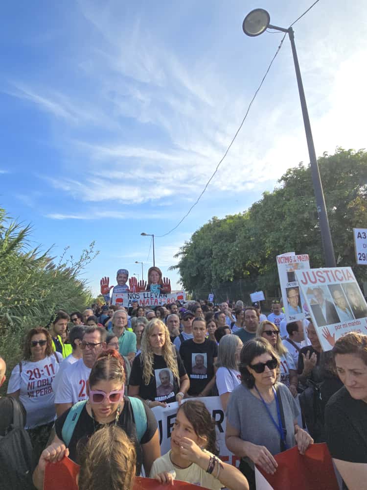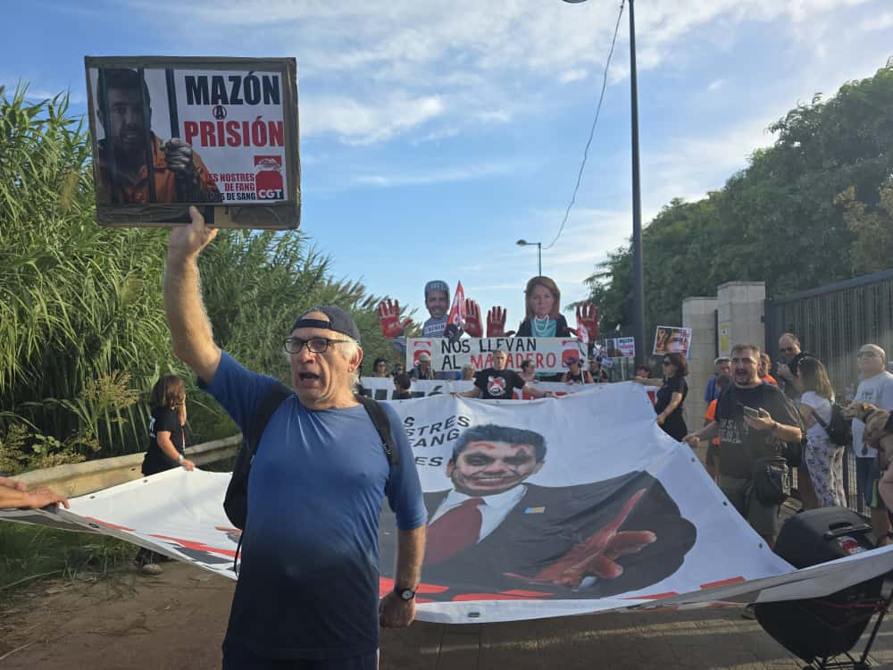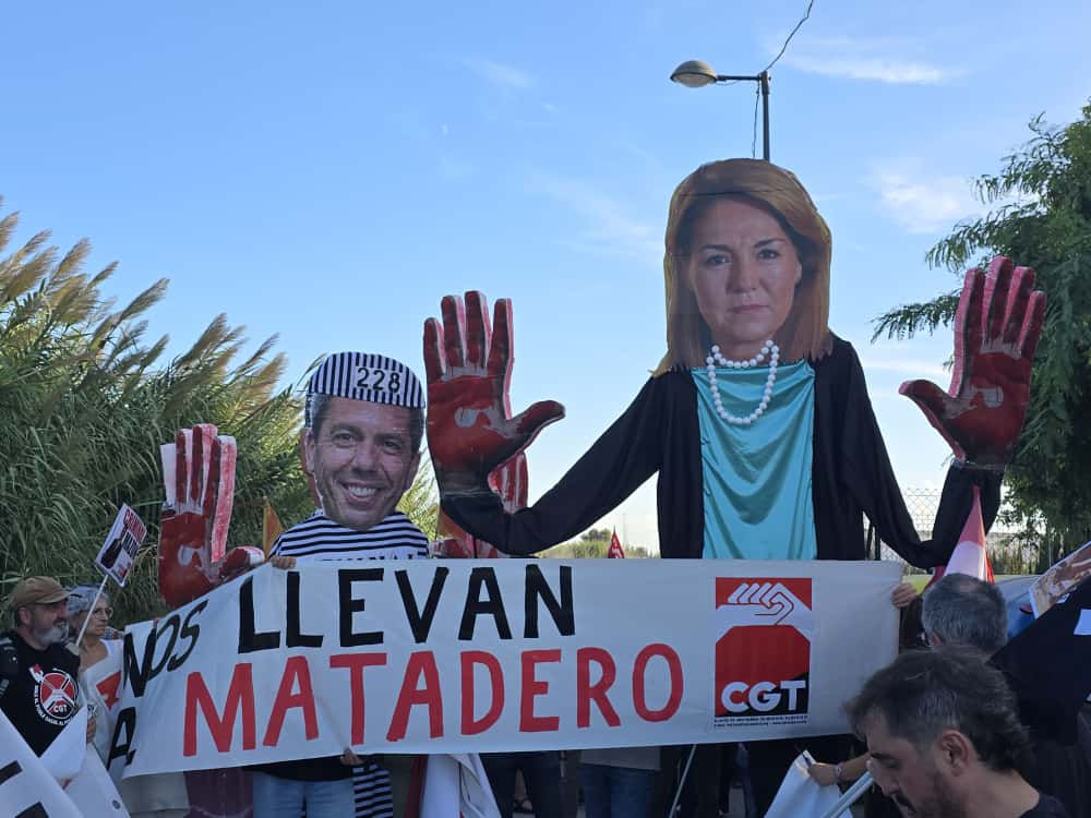 Desde CGT se ha denunciado con un gran muñeco de Susana Camarero con las manos manchadas de sangre, similar al ya habitual en las manifestaciones de Carlos Mazón, “la negligente gestión de la vicepresidenta y consellera de Servicios Sociales, Igualdad y Vivienda de la Generalitat Valenciana, responsable de las residencias que ese día prefirió irse a recoger un premio a cumplir con sus obligaciones”. “Si el aviso hubiera llegado cuando y cómo debía los usuarios no hubieran estado en la planta baja y no se habrían ahogado” afirman desde la organización anarcosindicalista.